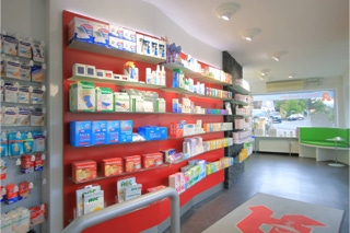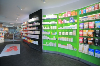 Kostenlose Parkplätze (mit Parkscheibe) gegenüber der Apotheke sind vorhanden